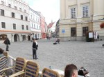 I’m sitting at an indoor/outdoor cafe enjoying the music by the accordion player (seated just below the yellow building – Trybunal building).