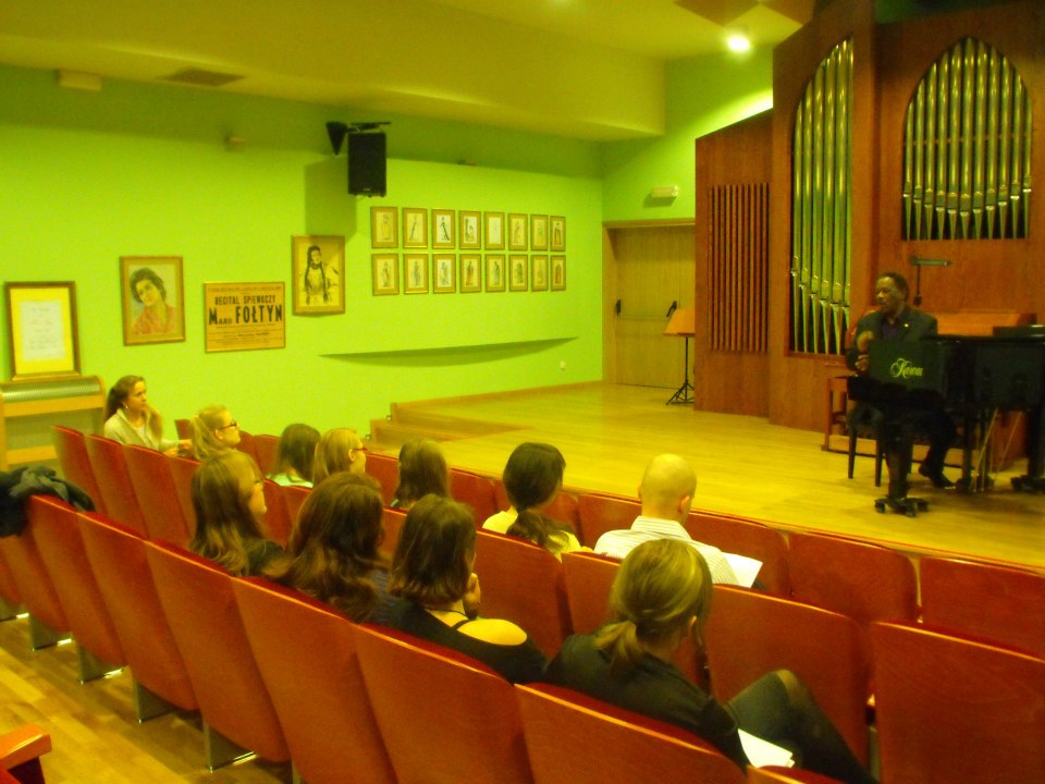 A local TV station, organized by American Corner in Radom, came by to interview the Vocal Master Class by Stan Breckenridge.