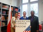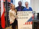 Karolina Adamczyk, Coordinator American Corner in Radom; Małgorzata Krasowska, Executive Director of the Fulbright Commission in Poland, and Stan Breckenridge, Distinguished Chair Fulbright Scholar at the American Corner in Radom, November 19, 2012.