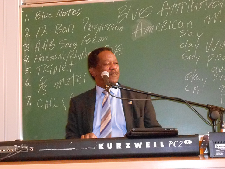 Demonstrating the left hand bass against rhythmic chords played by the right hand.