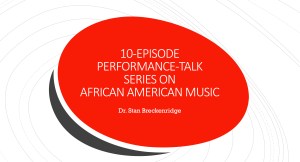 This video combines excerpts from three performance-lectures, all of which include music performance, speaking, and visually engaging Powerpoint presentations. The first, recorded live in Morocco, presents specific music characteristics among African slaves that greatly influenced the development of African American music. The second, gives an overview of rhythmic tendencies found in soul, funk, and disco. In the last one, at the Film Festival in Radom, Poland, Stan Breckenridge performs songs that were popularized in selected American films from the 1940s to 1990s.